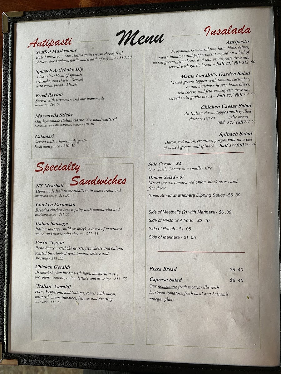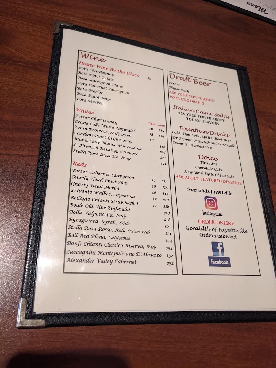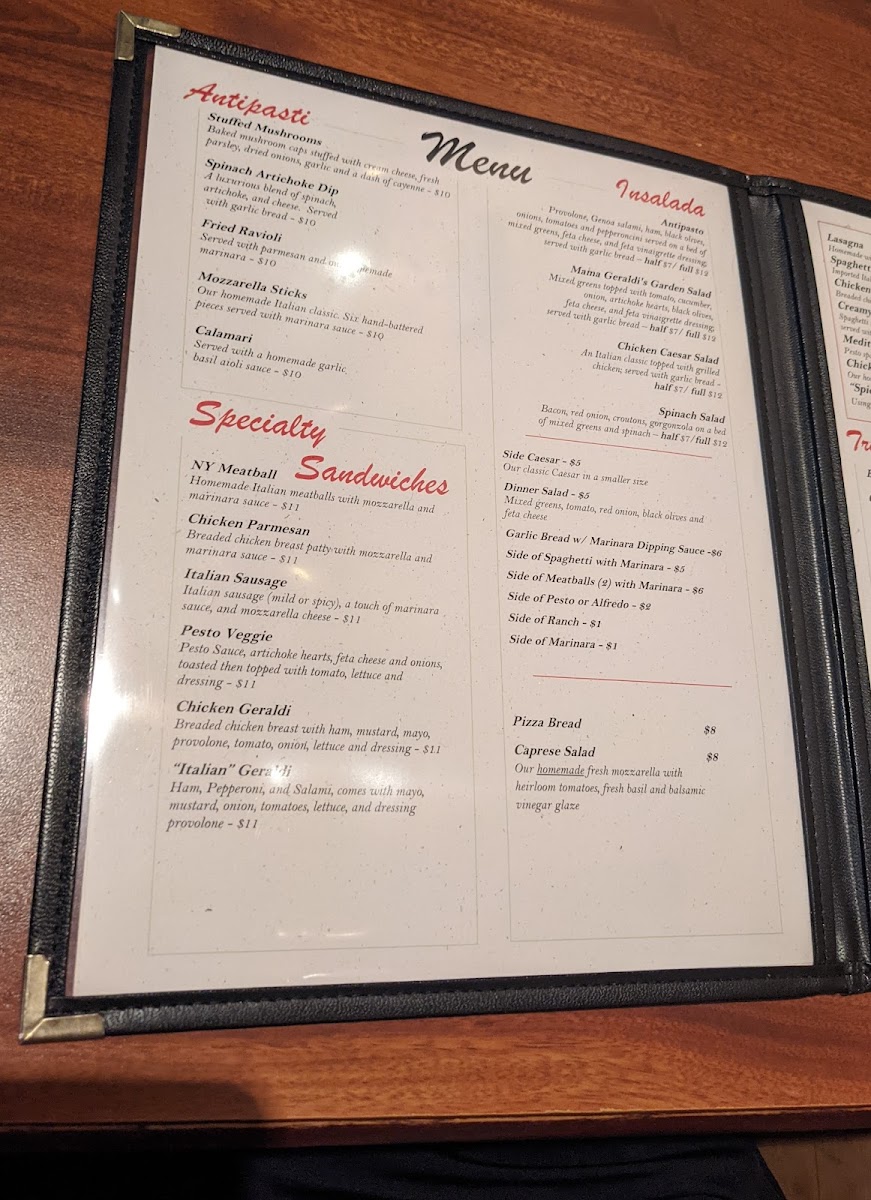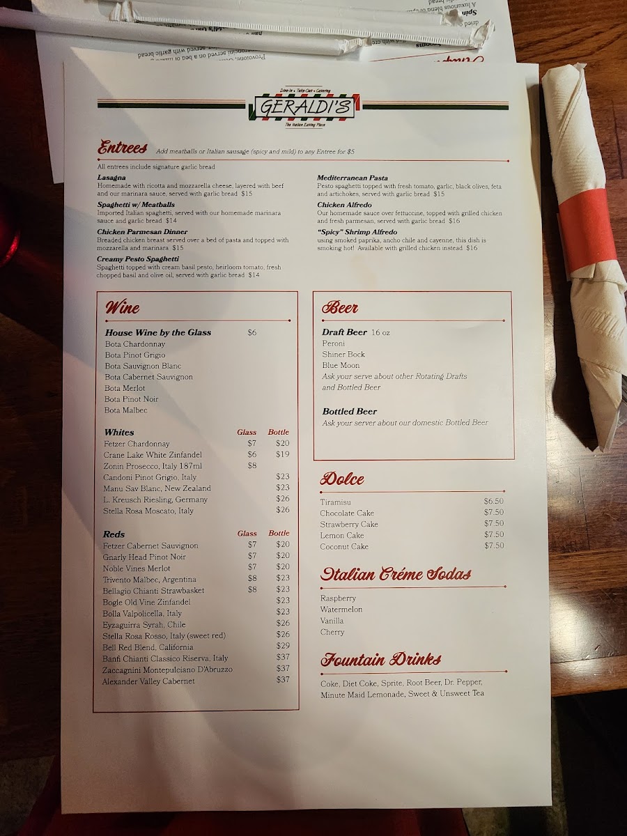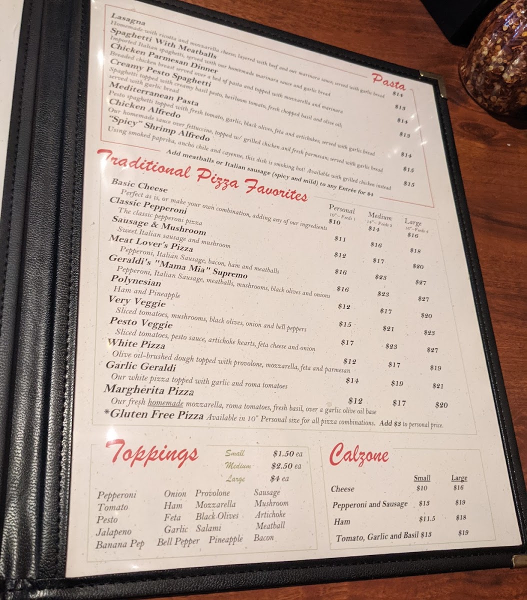 Welcome to Geraldi's, a cozy culinary gem nestled in Fayetteville, Arkansas. The menu is a delightful showcase of Italian comfort food, starting with mouthwatering antipasti like Stuffed Mushrooms and Spinach Artichoke Dip, perfect for sharing. Don't miss their crispy Fried Ravioli served with marinara – a true crowd-pleaser.